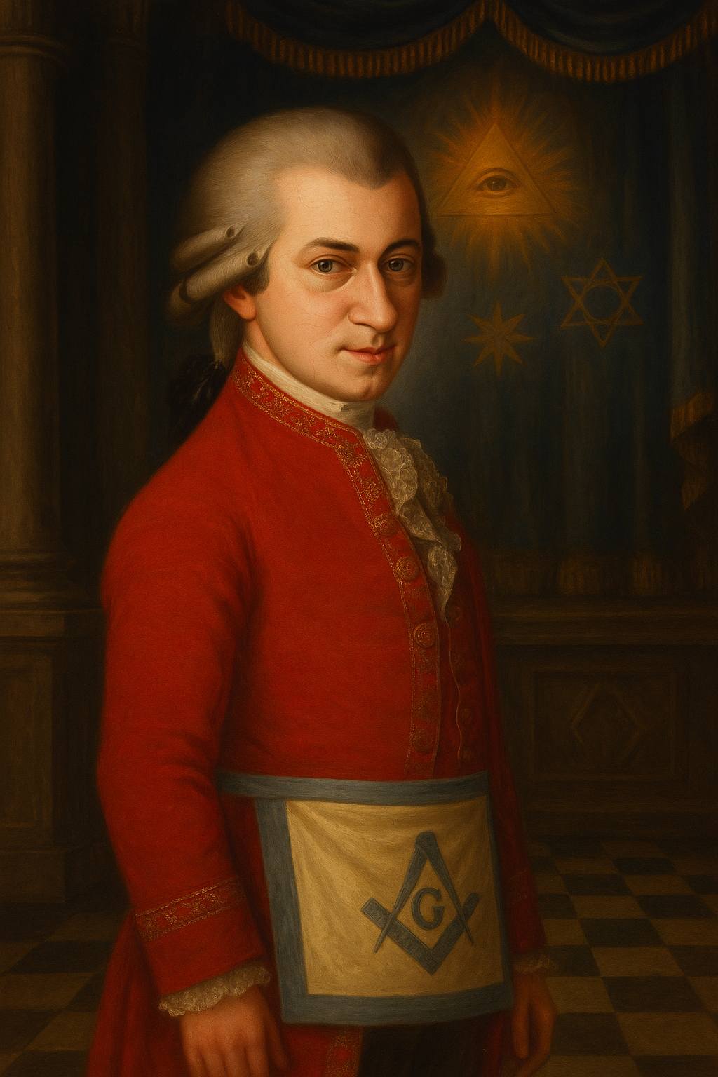Το 1874 ένας νέος ηλικίας μόλις 27 ετών, ωθούμενος από έναν πόθο να ανυψώσει τόν νούν του καί τήν καρδιά του στίς ύψιστες σφαίρες τής αλήθειας καί τού φωτός, έκρουσε τήν θύρα τής Στοάς “Η αγαθοεργία” τής Βιέννης καί ζήτησε να γίνει δεκτός σε αυτήν. Ζητούσε να βρεί, γιά τόν ίδιο, τήν ύψιστη αξία τής ζωής, γιά να αφοσιωθεί σε αυτήν καί να ρυθμίσει πρός αυτήν τόν βίον του. Η θύρα άνοιξε γιά αυτόν, διότι διαπιστώθηκε ότι ήταν χρηστών ηθών άνθρωπος καί έγινε δεκτός σε αυτήν έν ονόματι τού Παγκοσμίου Τεκτονισμού. Ο νέος αυτός ήταν ο Βόλφγκανγκ Αμαντέους Μότσαρτ, μία μουσική μεγαλοφυΐα, η οποία κατέπληξε τόν κόσμο. Η βιογραφία τού Μότσαρτ είναι γνωστή ώστε ελάχιστα μόνον από αυτήν θα γράψουμε καί κυρίως όσα θα μάς επιτρέψουν να λάβουμε αντίληψη τών βιωμάτων του, τών δεσμών δηλαδή τής ψυχής του πρός τόν εκτός αυτού κόσμο, τόν πραγματικό, τόν αισθητό, αλλά καί τόν νοητό, τόν ιδεατό καί θα μάς διευκολύνουν έτσι στό να αποκτήσουμε κάποια ιδέα περί τού πώς η μεγαλοφυΐα του μορφοποίησε το υπό τών αισθήσεων παρεχόμενο υλικό τών βιωμάτων του. Γεννήθηκε τόν Ιανουάριο τού 1756 στό Στρασβούργο τής Αυστρίας. Η μουσική του ιδιοφυΐα υπήρξε φαινόμενο στήν ιστορία τής μουσικής. Σε ηλικία μόλις τεσσάρων ετών, οπότε λογικά ακόμη δέν γνώριζε τούς μουσικούς νόμους, τού αρέσει να αυτοσχεδιάζει επάνω στό πιάνο μικρά μουσικά κομμάτια. Ετσι έφτασε μέχρι τού σημείου να παίξει ολόκληρο κονσέρτο δικής του εμπνεύσεως. Ο Βαυαρός εκλέκτορας, όταν τόν άκουσε, ψιθύρισε με δέος: “Ποιός θα τολμούσε να πιστεύσει ότι μέσα είς το μικρό αυτό κεφαλάκι χωρεί το άπειρον” . Σε ηλικία 6 ετών άρχισε με τόν πατέρα του καί τήν αδελφή του, όλοι τους μουσικοί, καλλιτεχνικές περιοδείες. Οι συναυλίες διαδέχονταν η μία τήν άλλη καί το παιδί φαινόμενο προκαλεί παντού κατάπληξη καί ενθουσιασμό. Επί 10 χρόνια το παιδί αυτό πού μεγαλώνει υποσιτιζόμενο, πού δέν τού επιτρέπεται να χορτάσει τόν ύπνο του, πού δέν έχει το δικαίωμα να παίζει σάν παιδί με τα άλλα παιδιά τής ηλικίας του, σέρνεται στίς πόλεις τής Ευρώπης καί επιδεικνύεται σάν το παιδί θαύμα, ως περίεργο… ζώον. Οι ζωγράφοι τής εποχής παριστάνουν το παιδί φαινόμενο καθισμένο επάνω σε ένα ψηλό κάθισμα εμπρός από ένα πιάνο παίζοντας καί περιστοιχιζόμενο από ευγενείς καί αριστοκράτες, σάν να ήταν το χαϊδεμένο παιδί μεγάλων καί ισχυρών. Καί όμως, κάτω από τόν μεγαλοπρεπή καί φανταχτερό αυτόν διάκοσμο, προβάλλει μία άλλη εικόνα, η οποία προκαλεί αβάσταχτη θλίψη. Ένας ταλαιπωρημένος μικρός, πού τόν εξαναγκάζουν να ξενυχτάει, να υποκλίνεται στούς ευγενείς, να σκορπάει βεβιασμένα μειδιάματα στίς μεγάλες καί επιβλητικές αίθουσες, πού είναι υποχρεωμένος να συναναστρέφεται με μουσικούς καί καλλιτέχνες με ιδιάζουσα νοοτροπία καί εκκεντρική συμπεριφορά. Κι όμως το περιβάλλον αυτό, η τόσο αποπνικτική αυτή ατμόσφαιρα γιά τήν ηλικία του, μέσα στήν οποία ανατρέφεται καί ζεί, δέν τόν παρασέρνει στήν κακία καί τήν διαφθορά. Δέν μνησικακεί, παραμένει αγνός καί καλός. Η καλοσύνη του διαχέεται αυθόρμητα με τήν ανάβλυση τής μουσικής του ιδιοφυΐας. Διατηρεί σε όλη του τήν ζωή τήν δροσερότητα τής παιδικής του ηλικίας. Είναι καί παραμένει ως άνθρωπος υπέροχος. Γιά να γνωρίσει κανείς τόν Μότσαρτ πρέπει να διαβάσει τίς πλήρεις χάριτος επιστολές, τίς οποίες έγραψε στούς δικούς του καί τών οποίων σημαντικός αριθμός σώζεται μέχρι σήμερα. Σε αυτές η θλίψις του ξεθυμένει γρ
